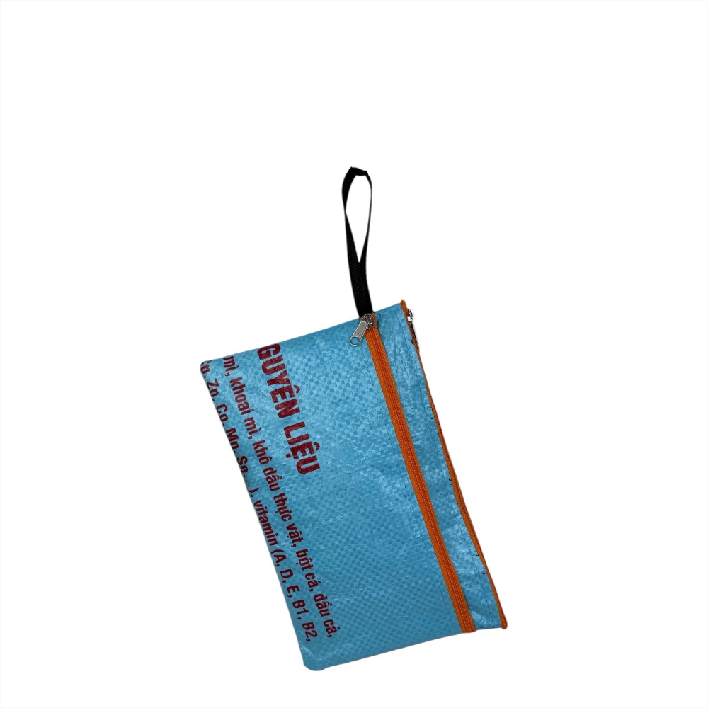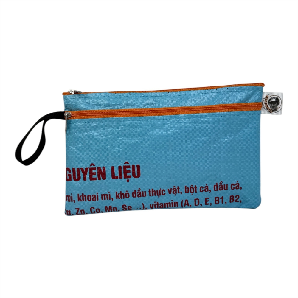 Hergestellt aus recyceltem Reissackmaterial, überzeugt die Tasche mit einem robusten, wasserabweisenden Äußeren und einem überraschend geräumigen Innenleben. Im großen Hauptfach finden Stifte, Kosmetik oder andere Utensilien mühelos Platz. Ein zusätzliches Außenfach mit Reißverschluss sorgt für schnellen Zugriff auf Kleinteile wie USB-Stick, Schlüssel oder Handy.