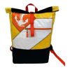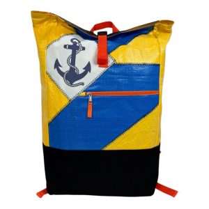 Der Spacy Ri104 ist mehr als ein Rucksack – er ist eine Weltinnovation im Upcycling-Design. Die neue Version kombiniert robuste Futtersack-Strukturen mit einer markanten Zick-Zack-Segelnaht, kräftigen Farben und einem ikonischen Anker-Patch in Markenorange. Ein Statement für Meeresschutz, Fairness und mutiges Design.
