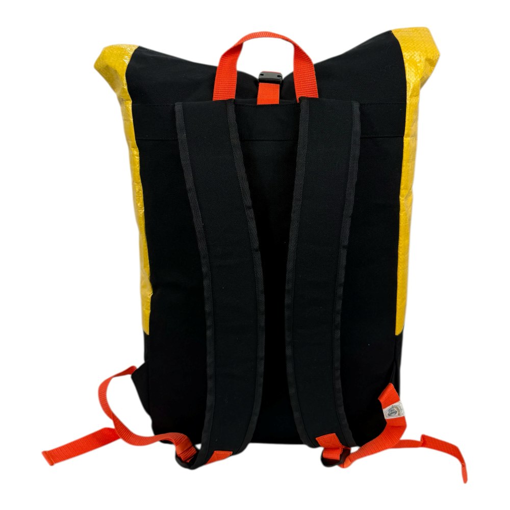 Der Spacy Ri104 ist mehr als ein Rucksack – er ist eine Weltinnovation im Upcycling-Design. Die neue Version kombiniert robuste Futtersack-Strukturen mit einer markanten Zick-Zack-Segelnaht, kräftigen Farben und einem ikonischen Anker-Patch in Markenorange. Ein Statement für Meeresschutz, Fairness und mutiges Design.