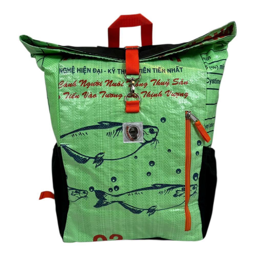 Nicht nur das Aussehen und das Funktionale überzeugen, sondern auch der Fakt, dass der Rucksack zu 100% aus recycelten Materialien von Hand produziert ist.