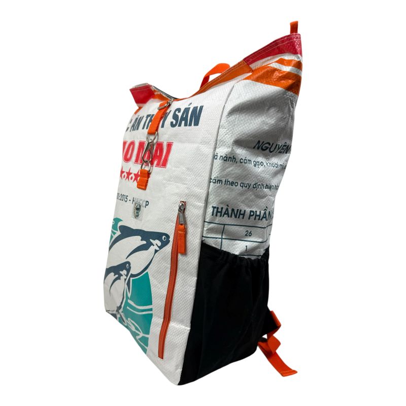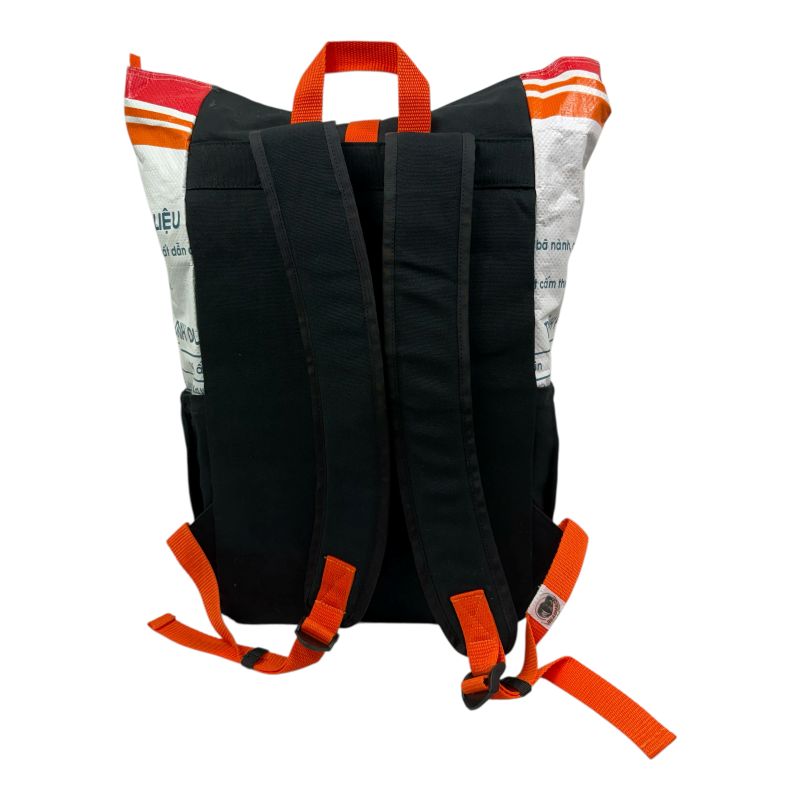 Nicht nur das Aussehen und das Funktionale überzeugen, sondern auch der Fakt, dass der Rucksack zu 100% aus recycelten Materialien von Hand produziert ist.