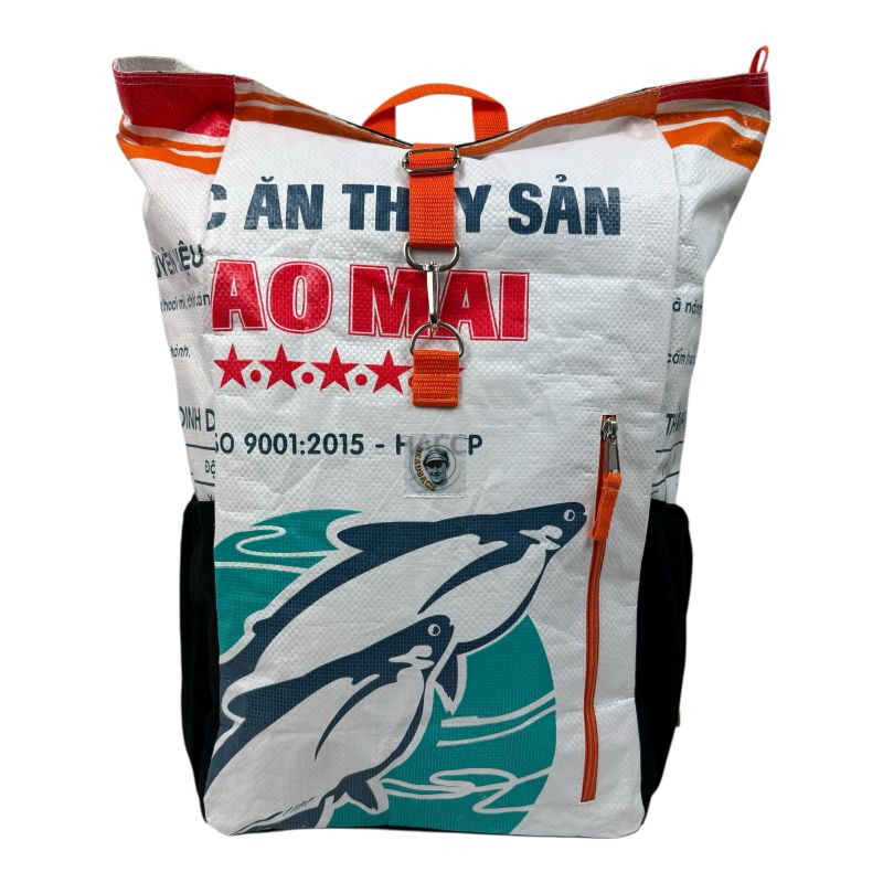 Unser Upcycling Rucksack unterstützt langfristige die Schonung der Umwelt und sichert Menschen in Kambodscha das Überleben.