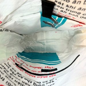 Wir arbeiten mit recycelten Reis-bzw. Zementsäcken. Unsere nachhaltigen Accessoires sind extrem widerstandsfähig, leicht, abwaschbar und halten hohe Lasten aus.