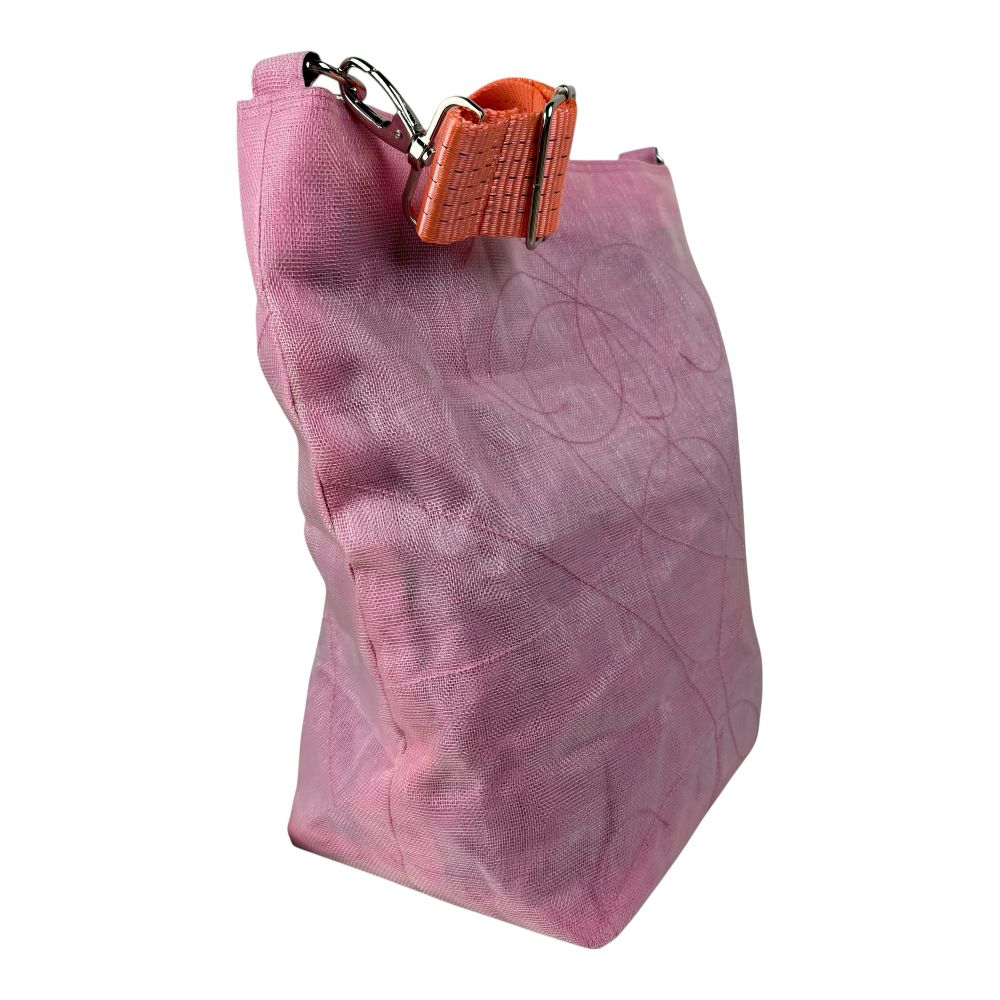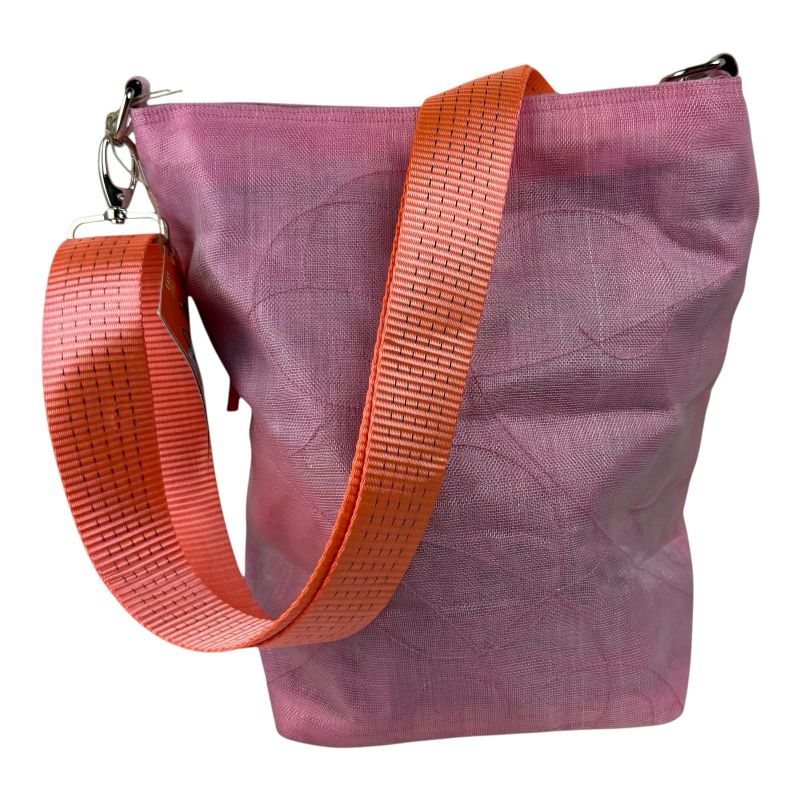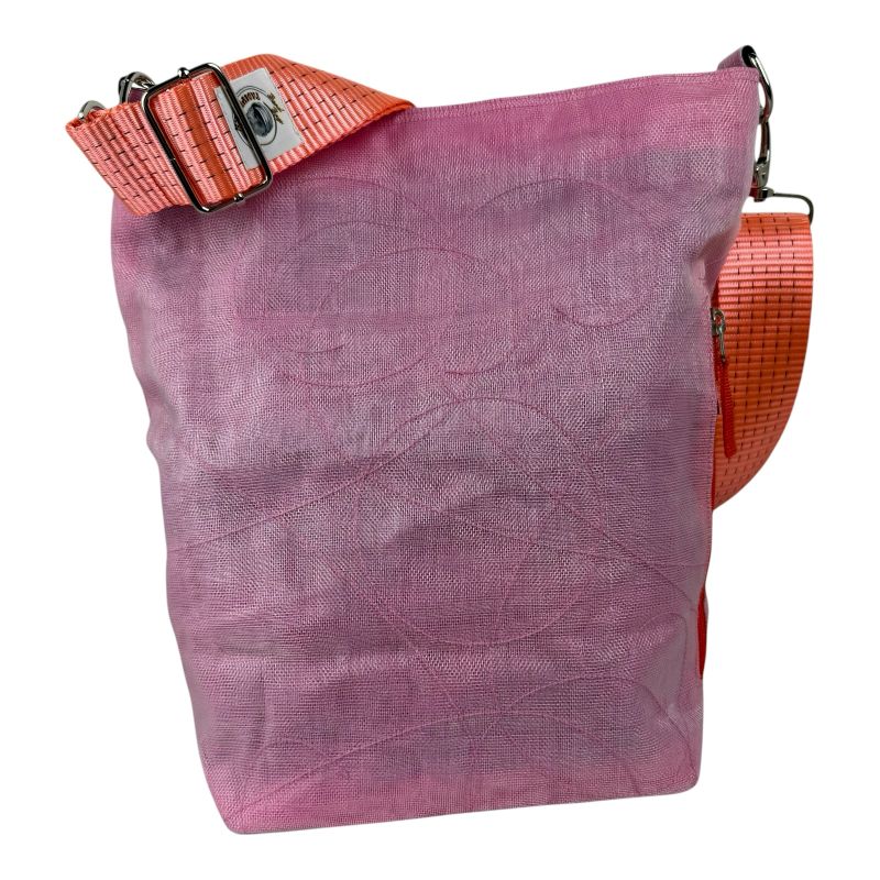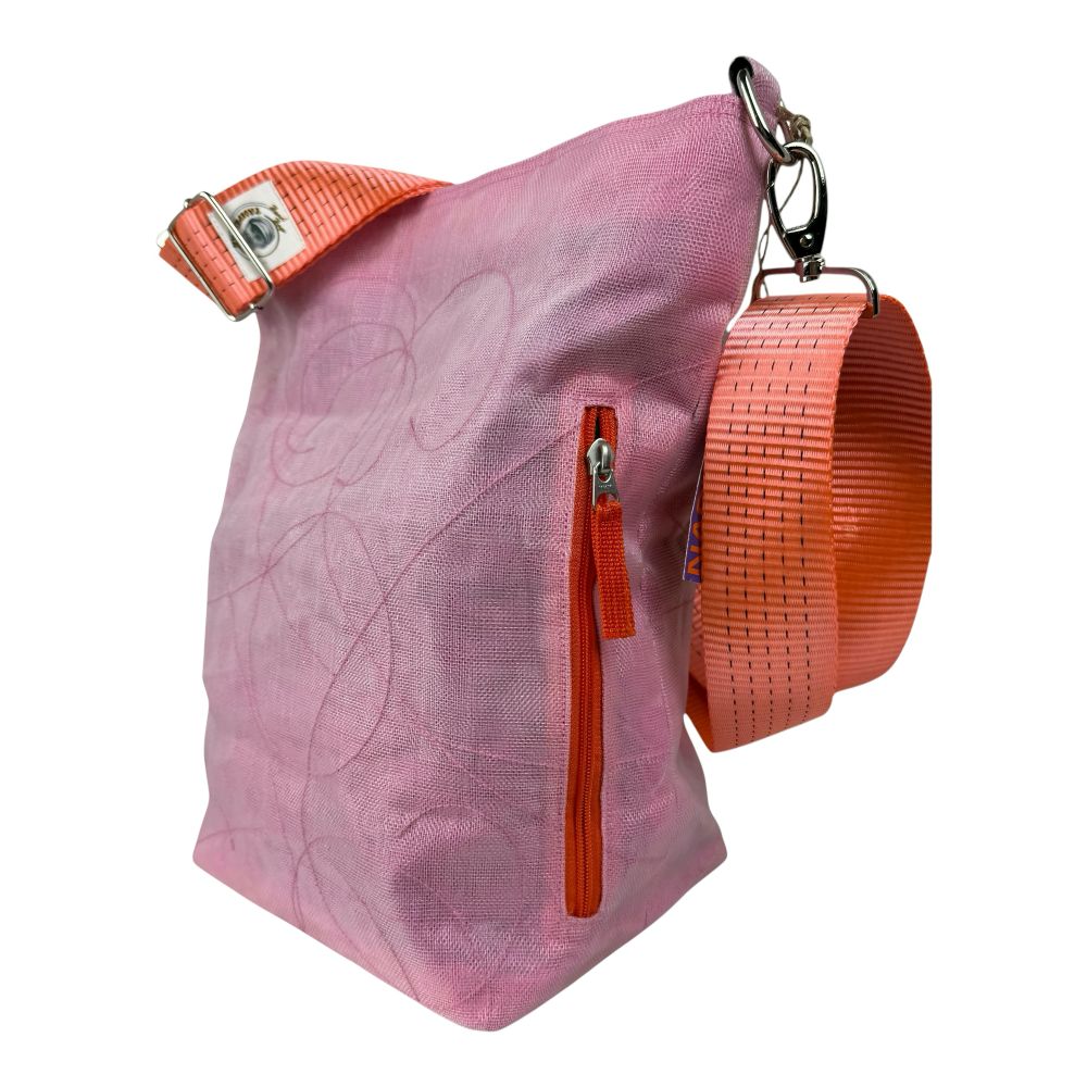 Komfortabler, auffälliger Schultergurt aus recyceltem Hochseegurt in Orange.
