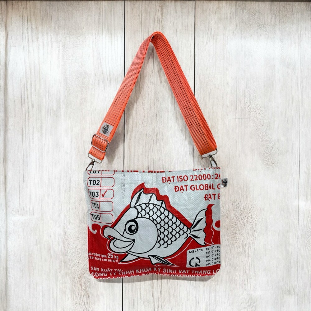 Beadbags Umhängetasche TJ77Quer mit Tampenjan Gurt weißer Fisch