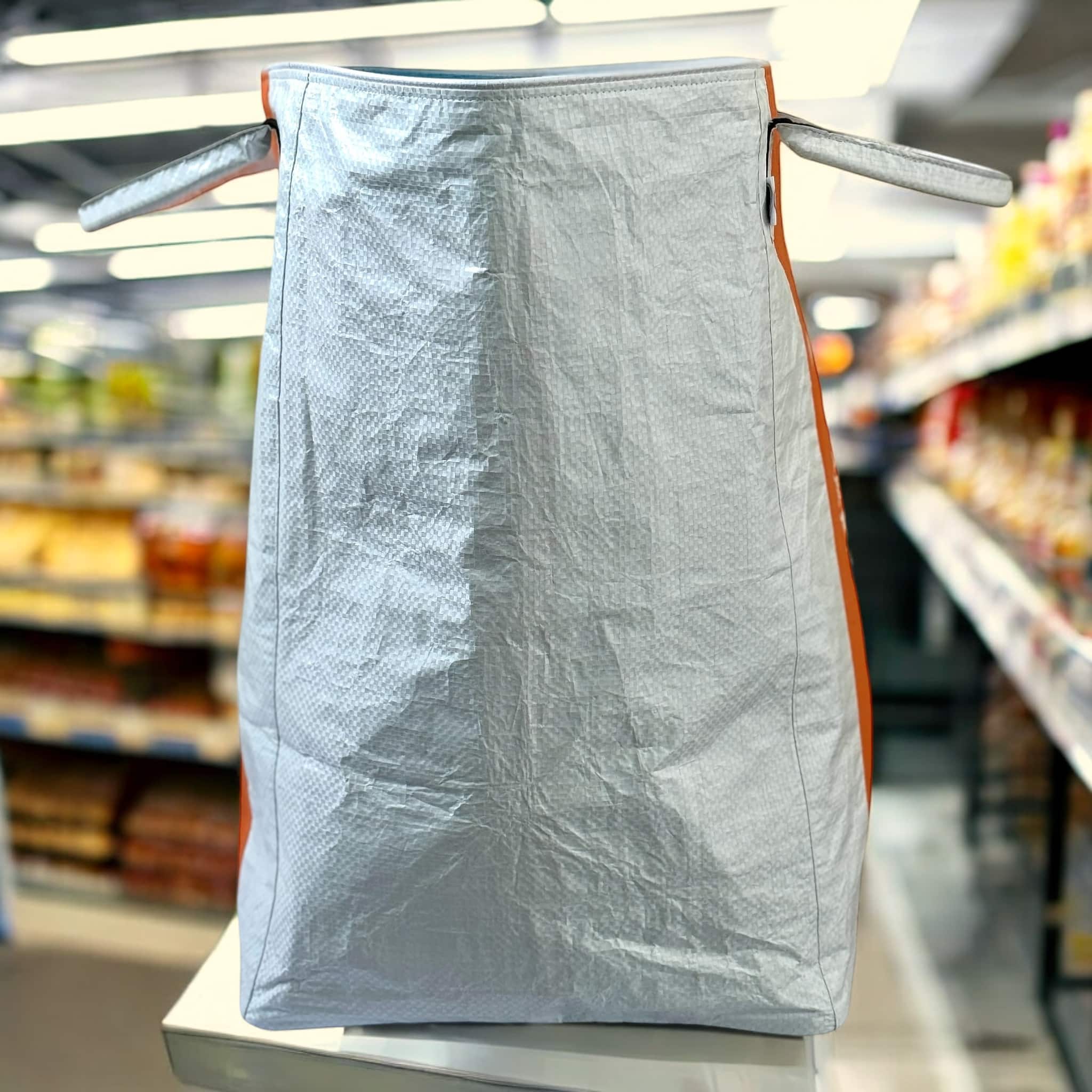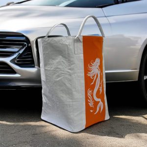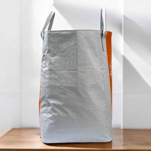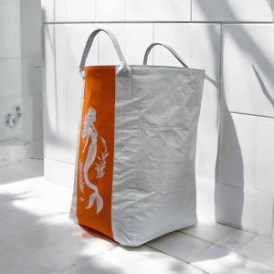 Die Tasche wird aus recycelten Futtersäcken (PP) produziert und ist extrem robust – wir nennen es gern auch „tropensturmerprobtes Material“. Genau das Richtige also für Haushalte mit viel Action.