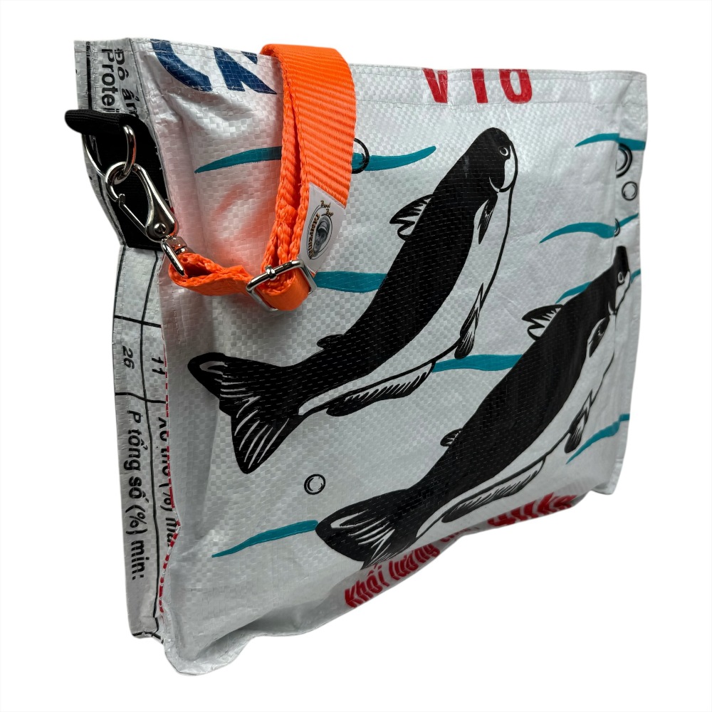 Beadbags Umhängetasche TJ77Quer mit Tampenjan Gurt weiß mit Fischen